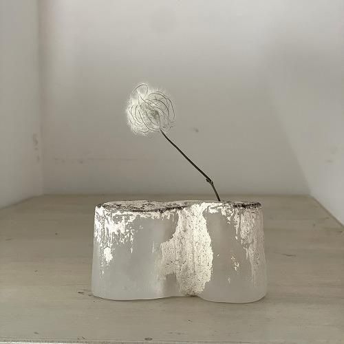 半透明のガラスと陶を組み合わせた作品です。